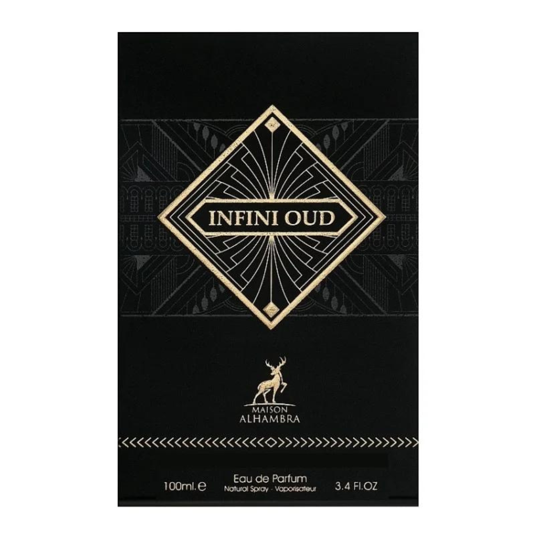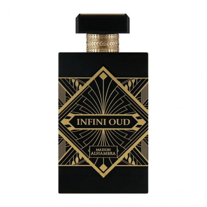 Infini Oud de la Alhambra este o apă de parfum lemnoasă pentru bărbați și femei. Caracterul puternic al parfumului este asigurată de prezența unui oud irezistibil, seducător și profund, care este înconjurat de acorduri picante de șofran și nucșoară, ale căror note sunt crescute de lavandă. Baza este completată de paciuli și mosc, care vor lăsa o urmă seducătoare și de lungă durată pe piele.