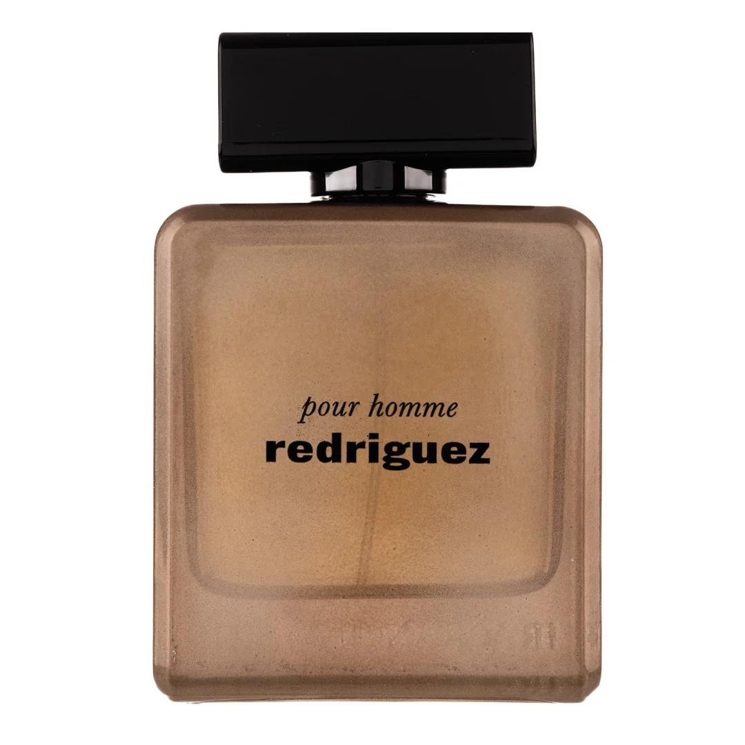 Redriguez pentru bărbați conține parfum bărbătesc plin de forță, senzualitate și farmec. El îl prezintă pe om ca pe un învingător al cărui drept de a câștiga este incontestabil și inevitabil. Datorită lui, aromele capătă o senzualitate aparte, atractivitate pentru sexul opus. Încântător și misterios, seduce prin picătura ardeiului roz, moliciunea discretă a irisului și farmecul fermecător al moscului. Ciocnirea în acest caz nu are sens - mult mai frumos să renunți!