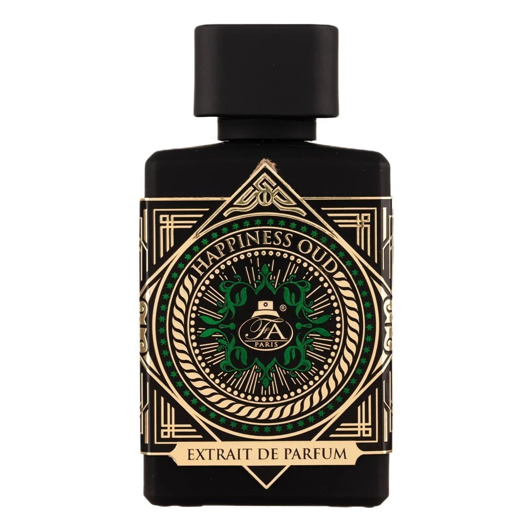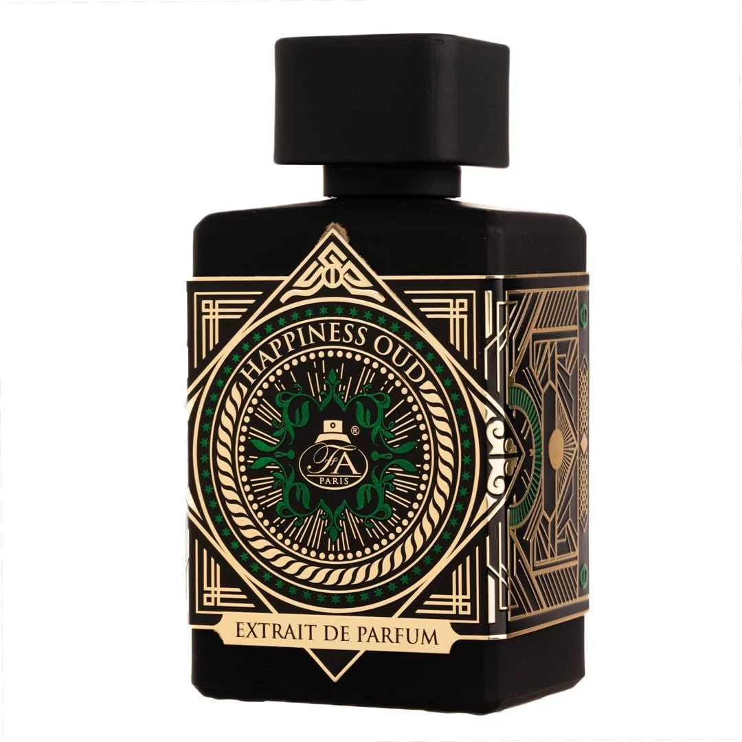 Happiness Oud extract De Parfum de la FA Paris (Fragrance World) (Inspirat de Initio Oud for Happiness) este un portal către modernitate. Amplifică beneficiile oud-ului printr-o pufă de iarbă narcotică proaspăt tăiată, energizantă și dezinhibată. Compoziția oferă un mijloc de relaxare care provoacă dependență, care stimulează încrederea în sine.