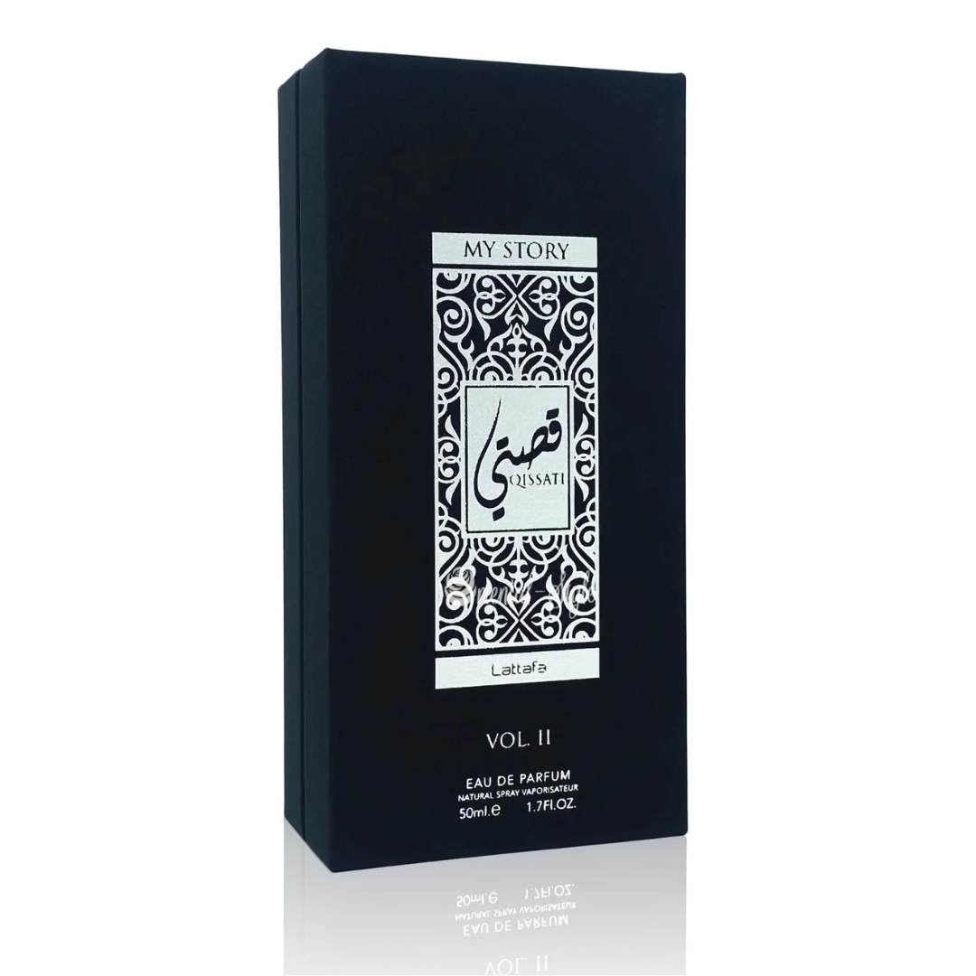 Parfum Qissati Vol. II - My Story Eau de Parfum de la Lattafa este un parfum floral cu note florale albe și galbene. Notele de varf se deschid proaspăt și fructat cu bergamotă și lămâi, deși notele florale strălucesc deja aici.