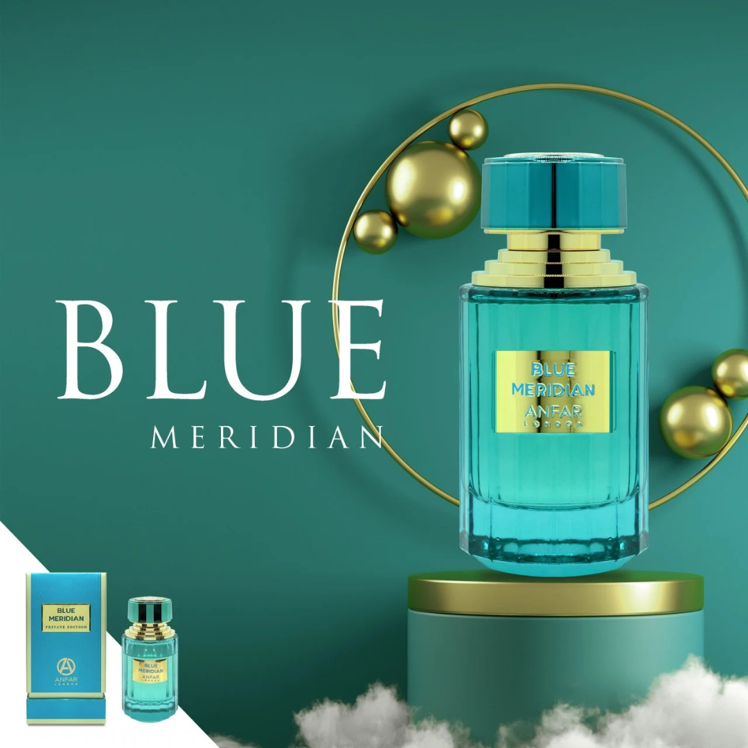 "Blue Meridian" de la Anfar London este un parfum ce te poartă în adâncurile oceanului, îmbătându-ți simțurile cu prospetimea și vibrația albastră a apelor.