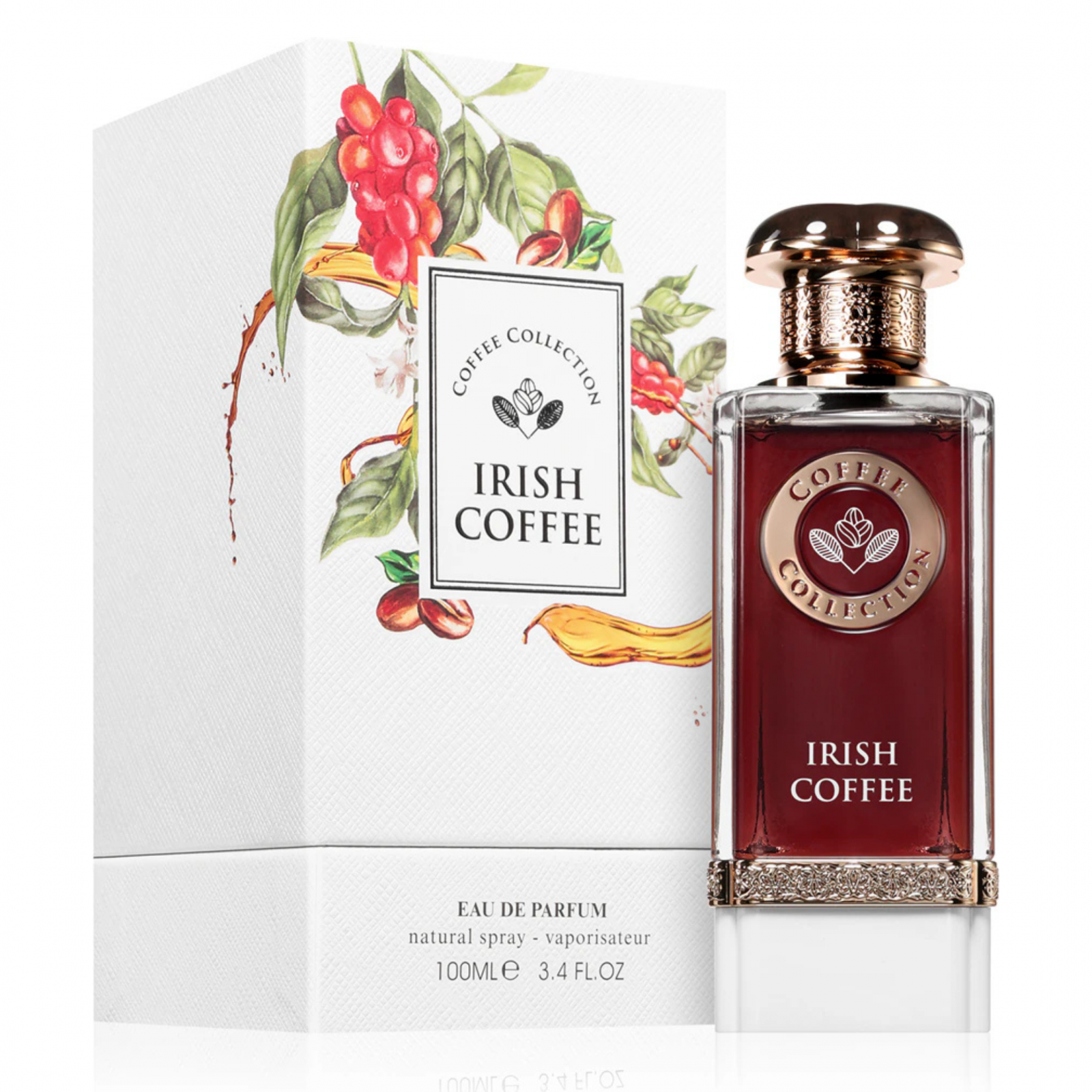 Irish Coffee de Fragrance World este un parfum Lemnos Aromatic unisex. Acesta este un parfum nou Irish Coffee a fost lansat in 2024. Notele de varf sunt piper si Davana; notele de mijloc sunt cafea, rom, tărâțe, trandafir si lacramioare; Notele de baza sunt whiskey, paciuli, cafea, coniac, lemn de santal, lichen, rasina benzoica, ulei Cypriol sau Nagarmotha, vanilie si caramel.