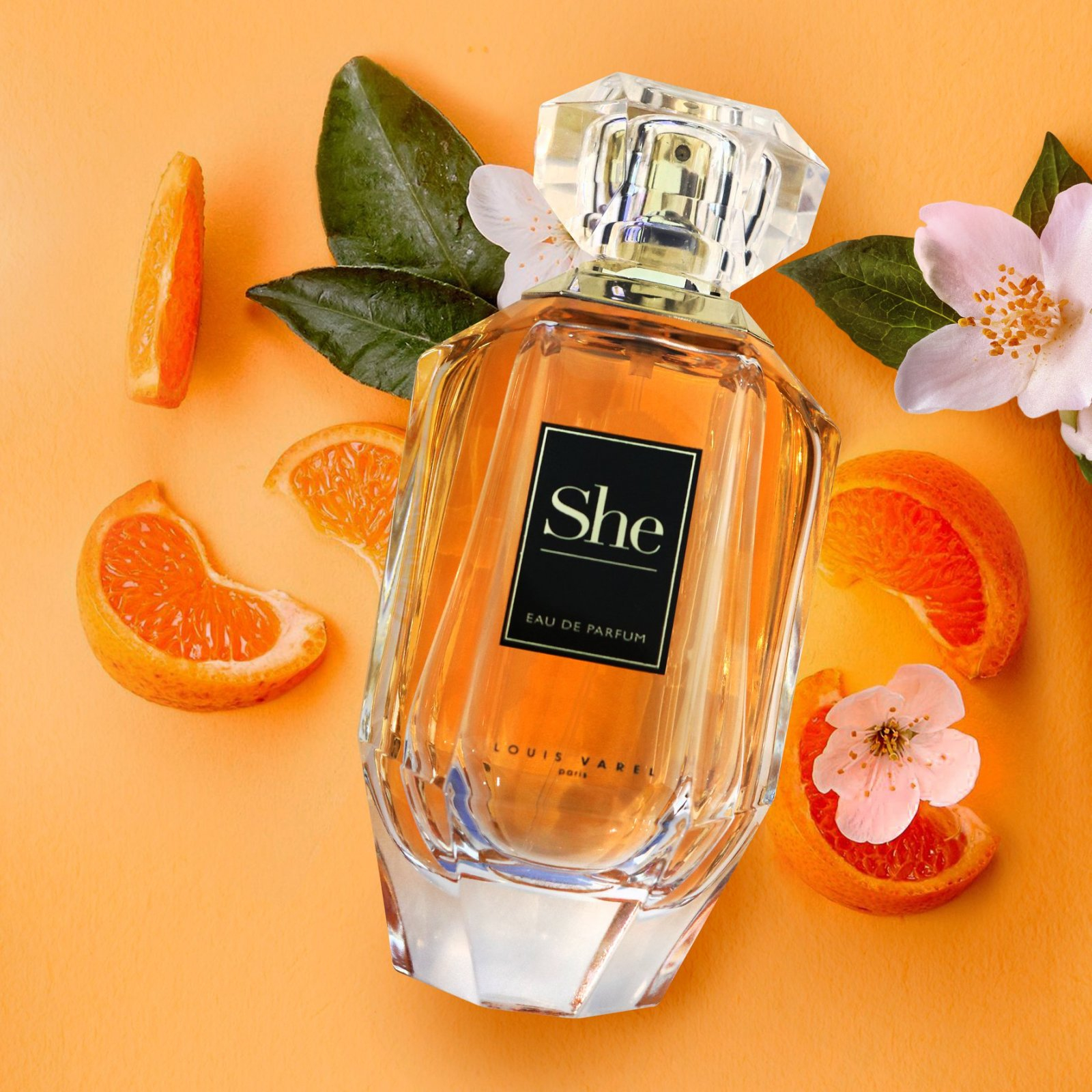 Parfumul “She” este o explozie senzuală de iasomie și citrice în notele sale de top, aducând o prospețime îmbietoare. În mijlocul compoziției, iasomia continuă să domine, însoțită de acorduri solare care adaugă un strop de căldură și strălucire. La baza parfumului, ambră albă și cașmirul aduc o notă catifelată și confortabilă, completată de accente lemnoase care adaugă profunzime și persistență.