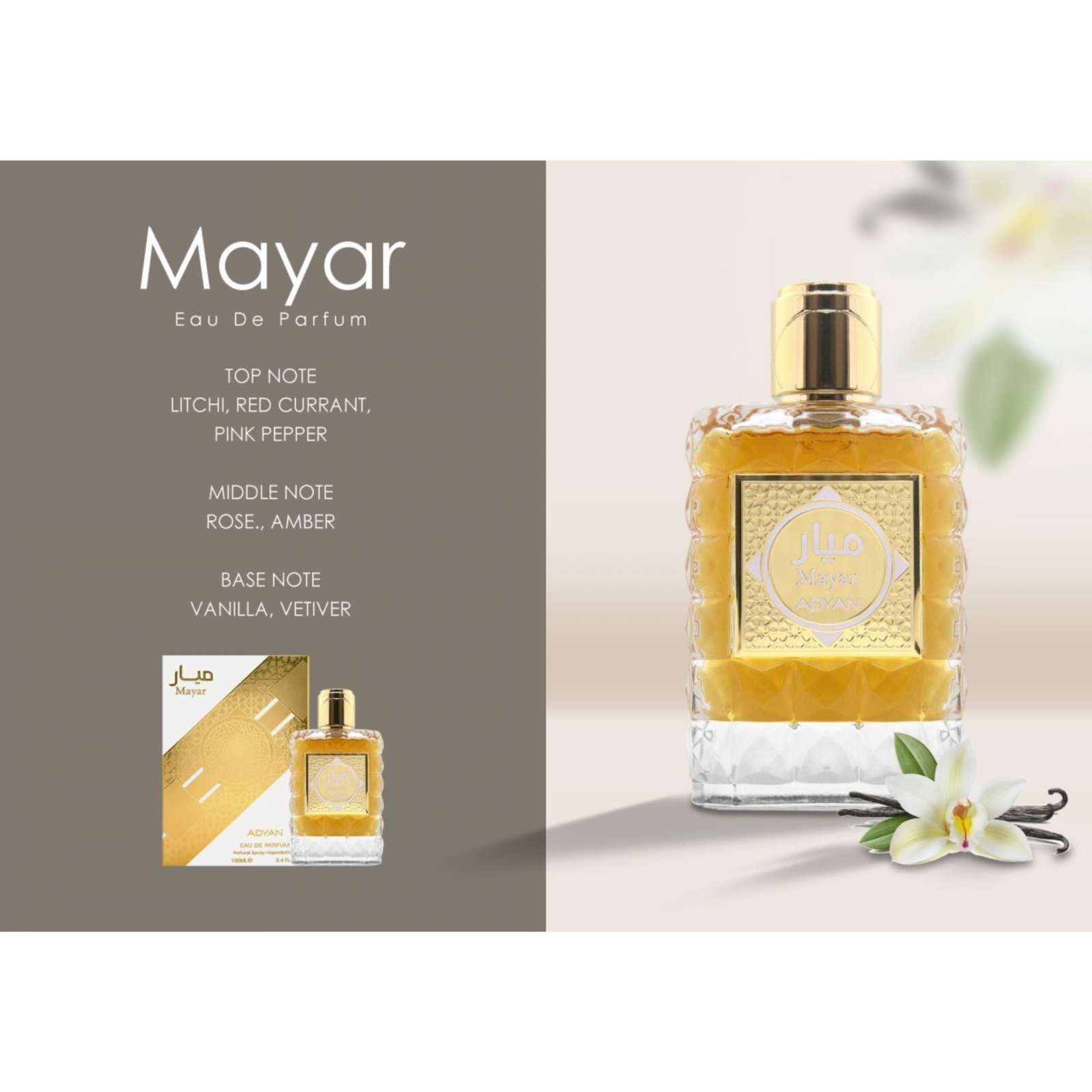 Mayar de la Adyan este un parfum Floral Fructat de dama. Acesta este un parfum nou. Mayar a fost lansat in 2022.